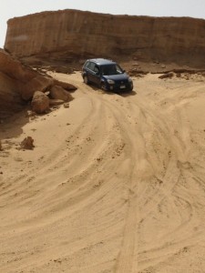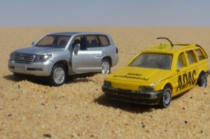 Da auf das zugegebenermaßen viel zu kleine Bild “unseres” Autos in der Wüste (siehe In Dakhla) so gar keine Reaktion kam, möchte ich hier mal eine kleine Aufstellung von Autos und Wüste machen….