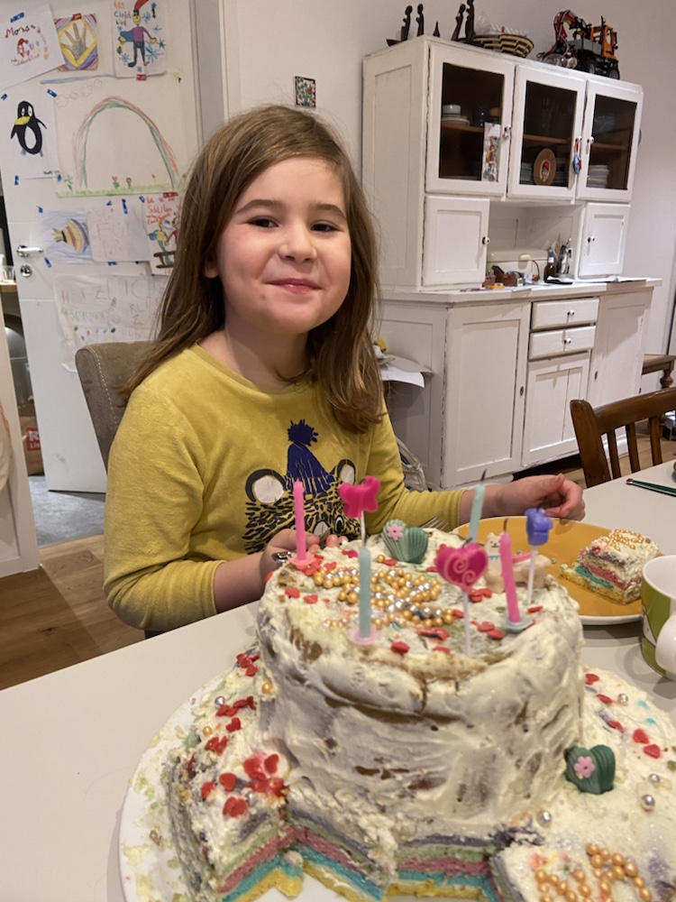 Mit grandioser Regenbogen Stufentorte von Phineas und Paula zum Frühstück lässt sich auch ein Corona Geburtstag gut feiern!